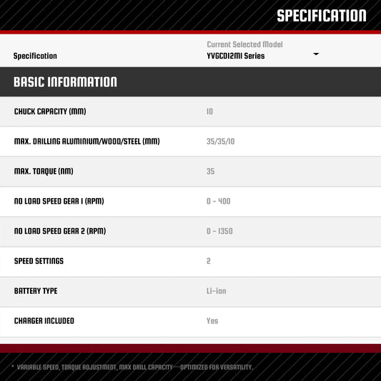 YEVOLT YVGCD12MI Series 12V Electric Drill 3/8" Chuck Cordless Driver Handheld Screwdriver Power Tools for Wood/Aluminum/Steel