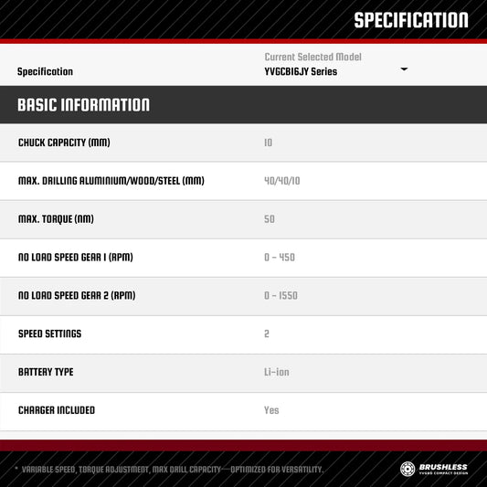 YEVOLT Electric Drill 20V Brushless Li-ion Compact Cordless 21+1 Driver Handheld Screwdriver Power Tools YVGBD20DU2 Series