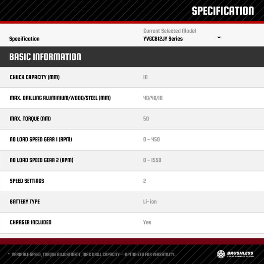 YEVOLT Electric Drill 20V Brushless 20+3 Impact Li-ion Compact Cordless Driver Handheld Screwdriver Power ToolYVGBD20DU3 Series