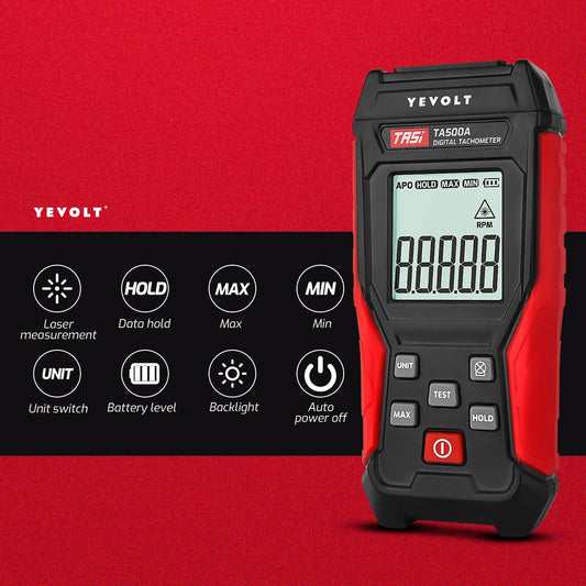 Un tacómetro es un instrumento de diagnóstico esencial para medir con precisión la velocidad de rotación (RPM) de motores, ejes y equipos mecánicos. En YEVOLT.NET , disponemos de una amplia gama de tacómetros digitales, tacómetros láser, tacómetros de contacto y medidores de RPM portátiles, diseñados para profesionales y aficionados que exigen lecturas precisas de rendimiento en talleres, fábricas y aplicaciones de campo. Ya sea que esté realizando el mantenimiento de una herramienta eléctrica, calibrando maquinaria industrial o ajustando motores pequeños, nuestros tacómetros ofrecen mediciones de RPM rápidas, precisas y fiables .