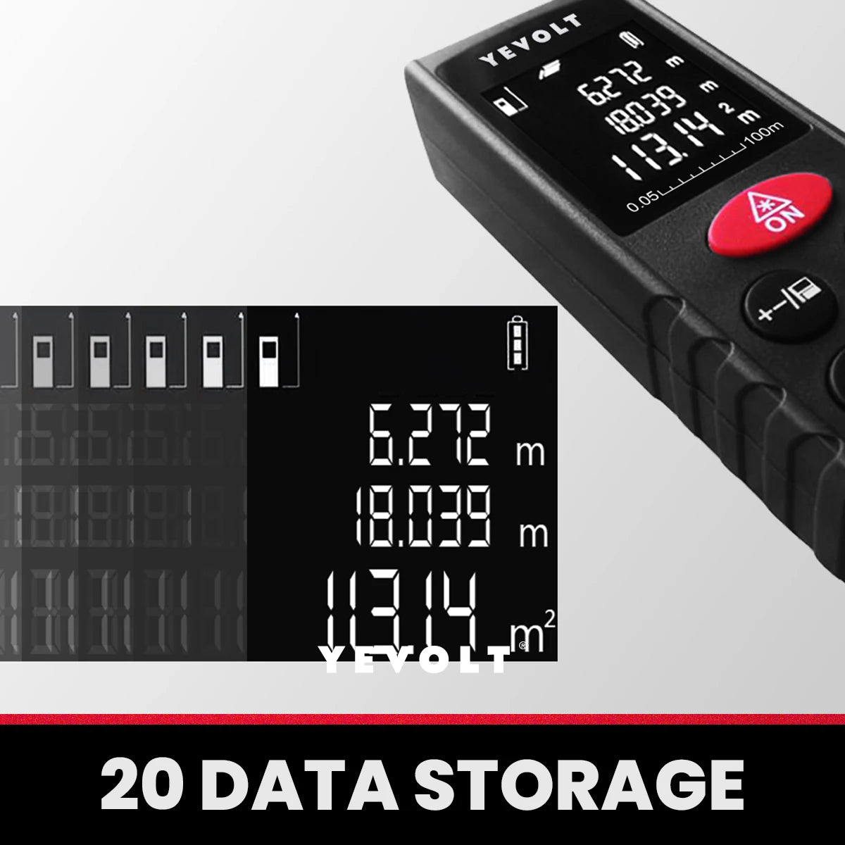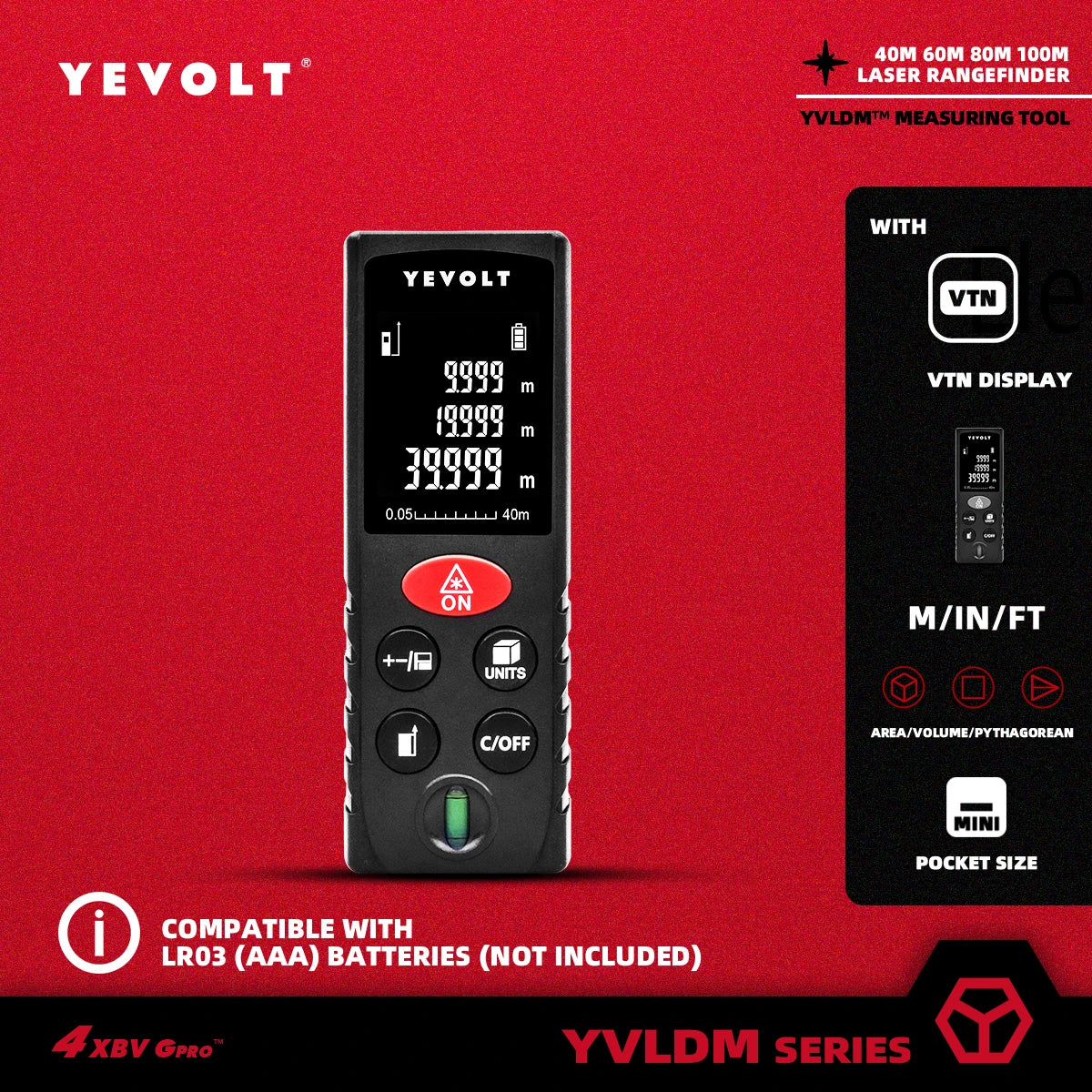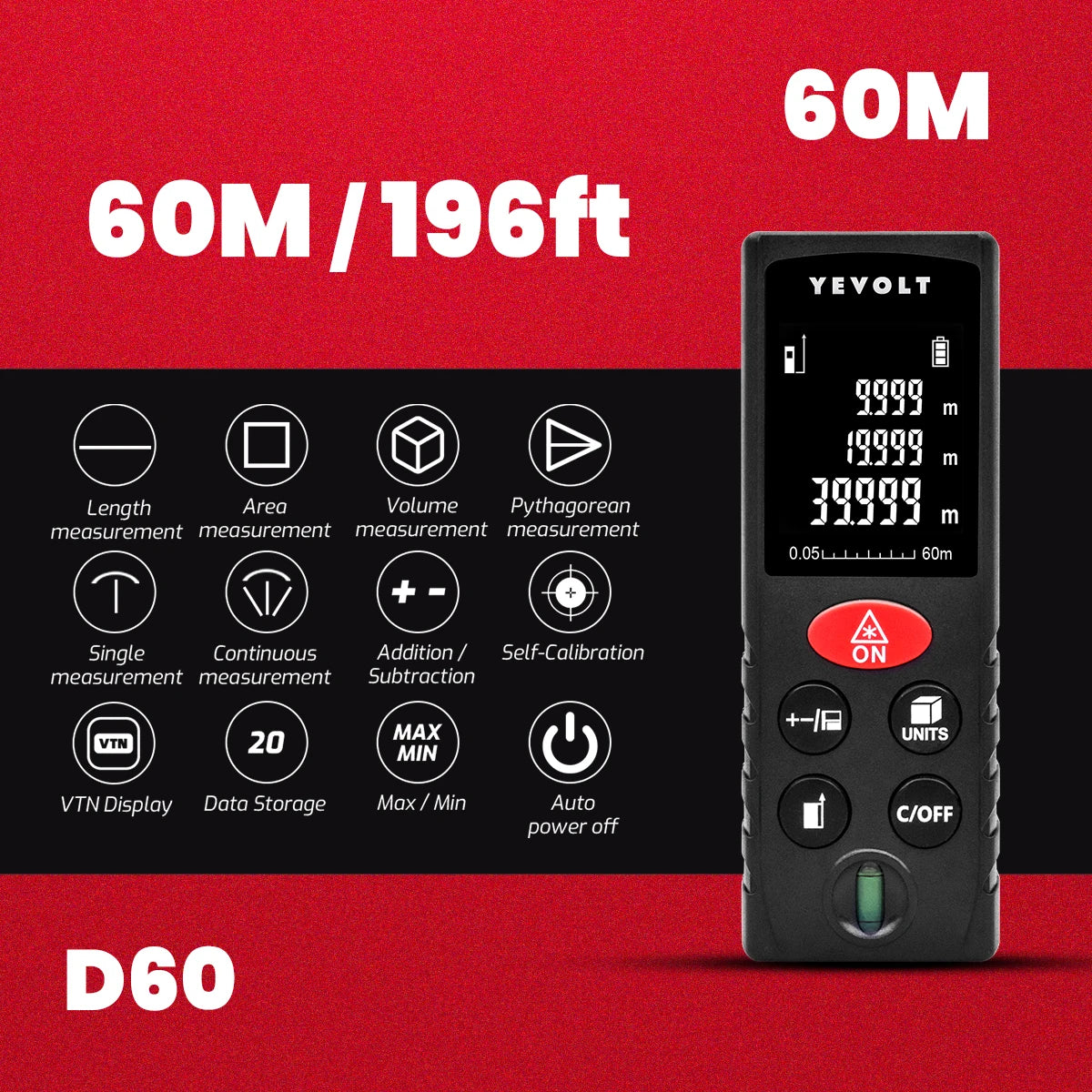 Medidor de distancia láser YEVOLT serie D, telémetro de 40/60/80/100 m, cinta métrica digital con retroiluminación de área, volumen y pitagórico.