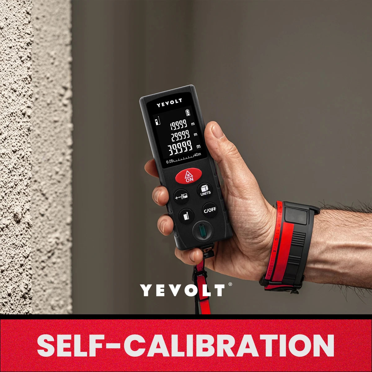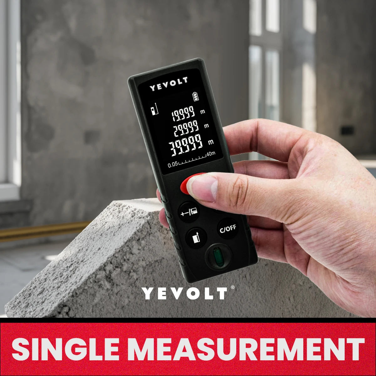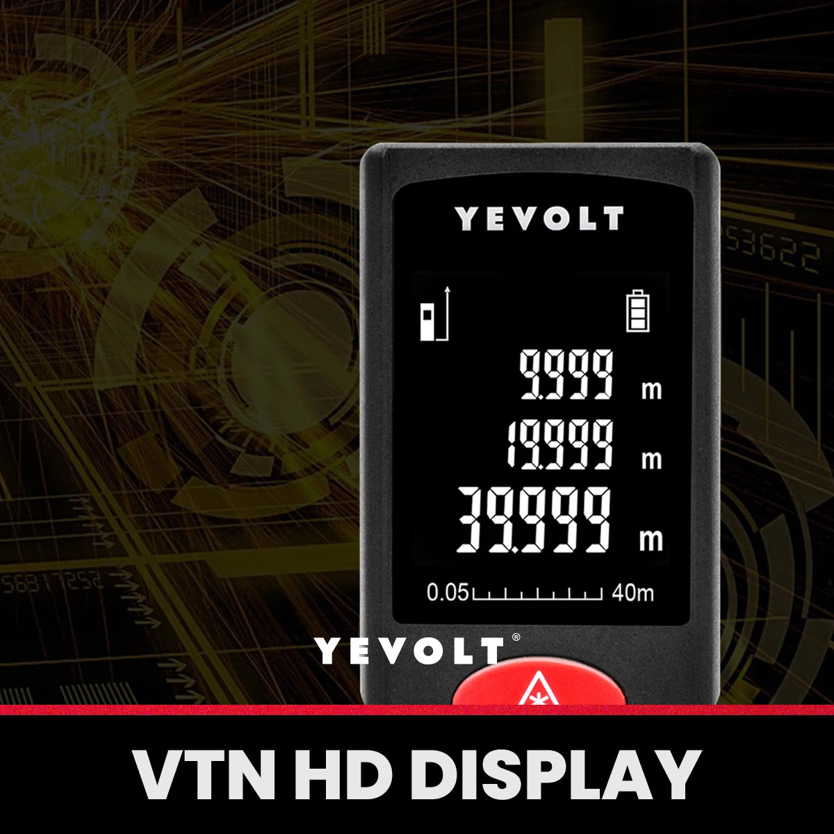 Medidor de distancia láser YEVOLT serie D, telémetro de 40/60/80/100 m, cinta métrica digital con retroiluminación de área, volumen y pitagórico.