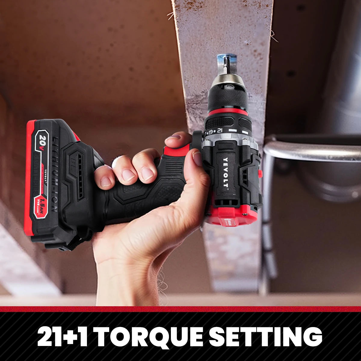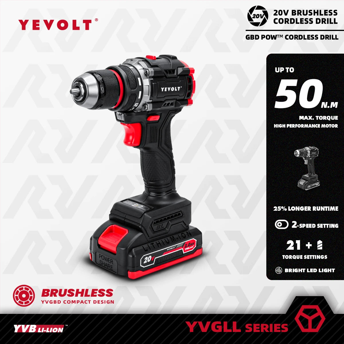 Taladro eléctrico YEVOLT de 20 V, sin escobillas, de iones de litio, compacto, inalámbrico, 21+1, destornillador de mano, herramientas eléctricas, serie YVGBD20DU2