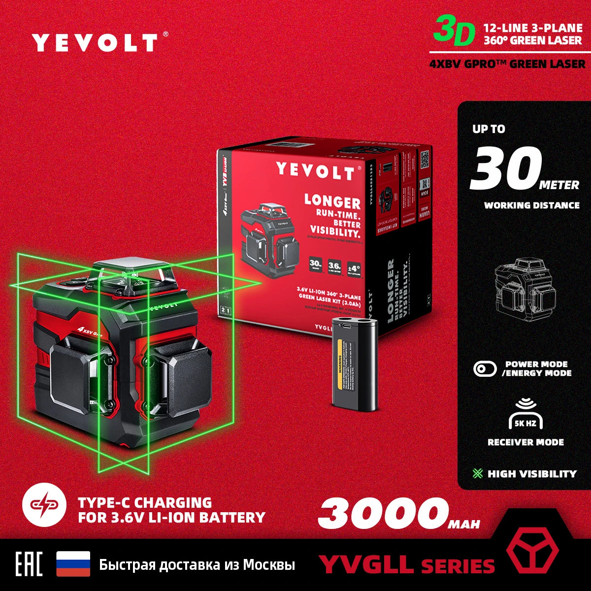 Nivel láser YEVOLT verde de 12/16 líneas, autonivelante, herramienta de medición 3D/4D de 360° - Trípode de 1,5 m - Serie YVGLL4XS