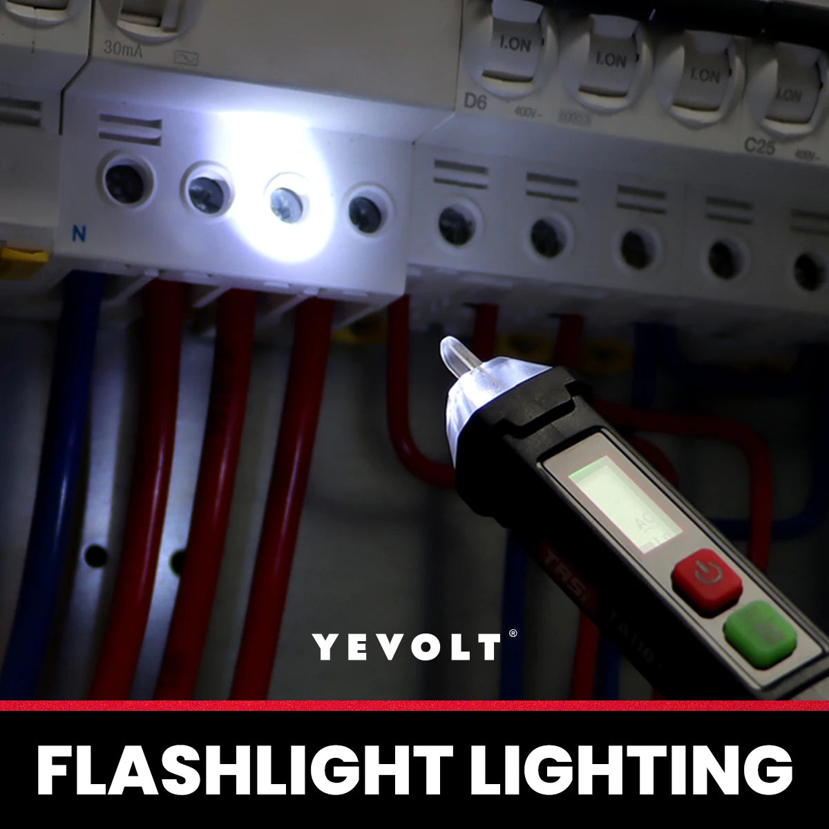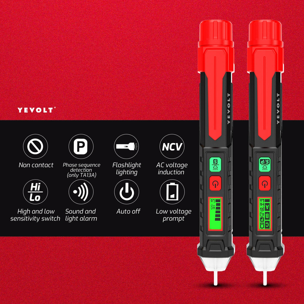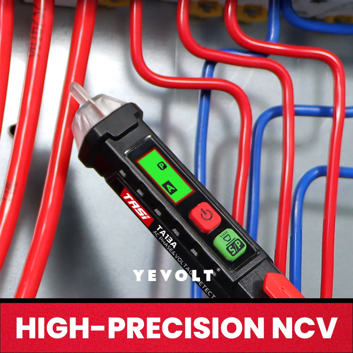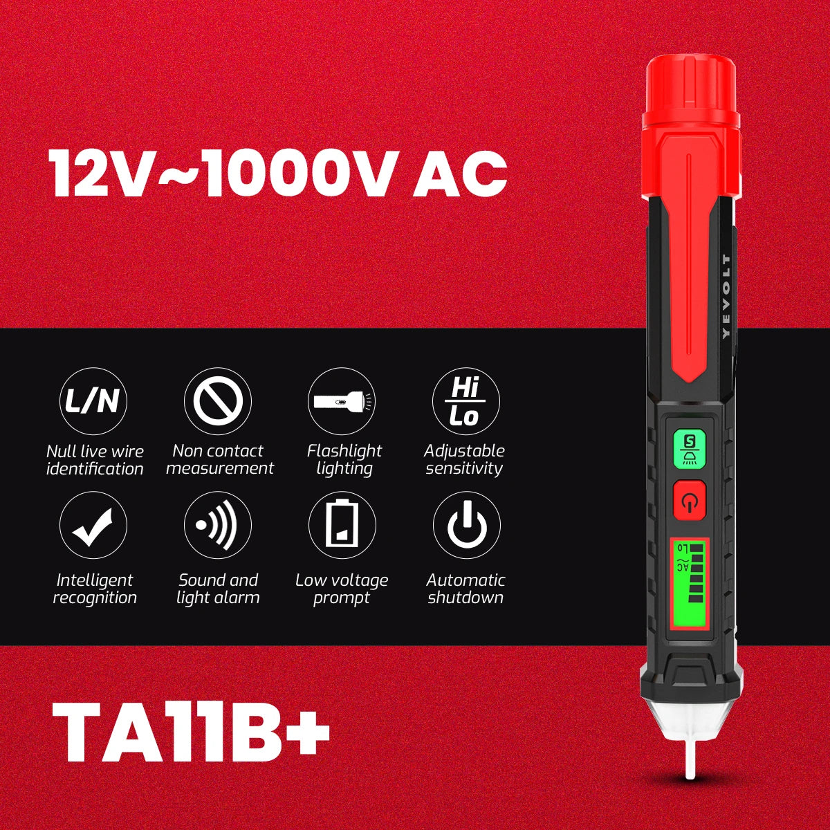 Probador de voltaje sin contacto YEVOLT TA13A/TA11B+, bolígrafo NCV, 12 V~1000 V CA, linterna, pantalla LCD, zumbador, alarma, comprobador de cable activo/nulo