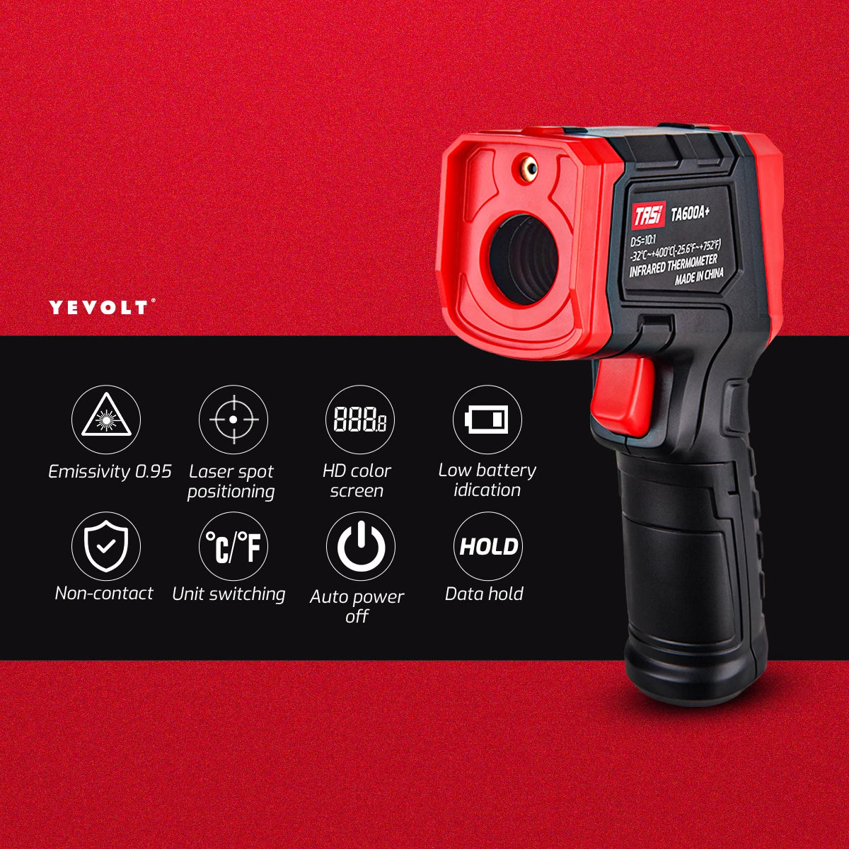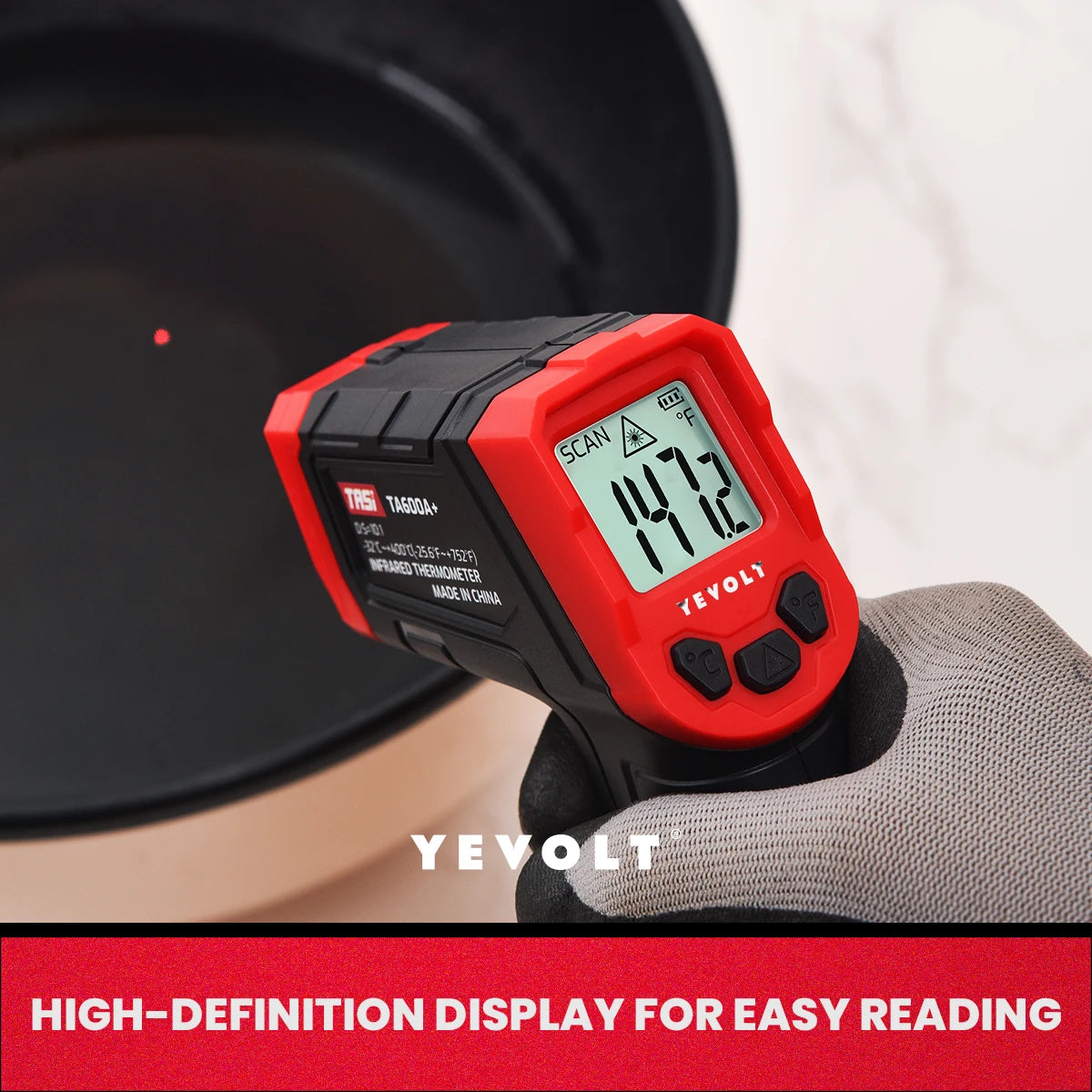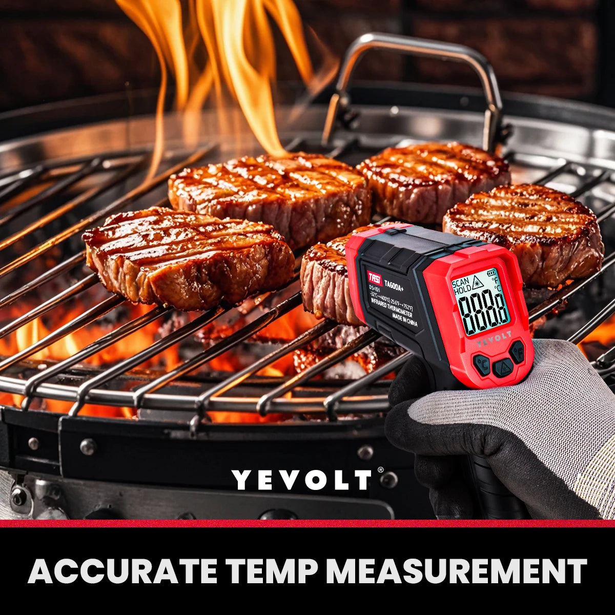 Termómetro infrarrojo digital YEVOLT serie TA600+, portátil, sin contacto, con láser IR, punta de pistola de calor, pantalla HD para cocinar