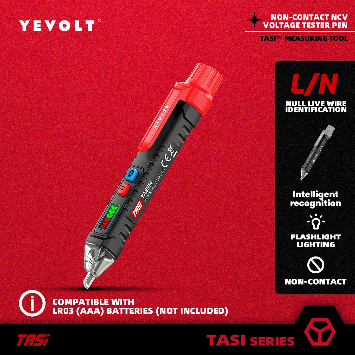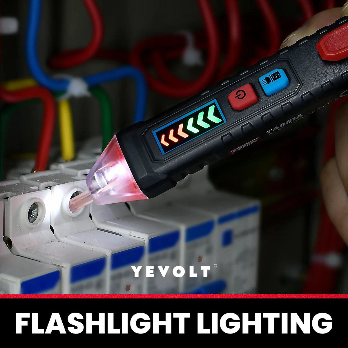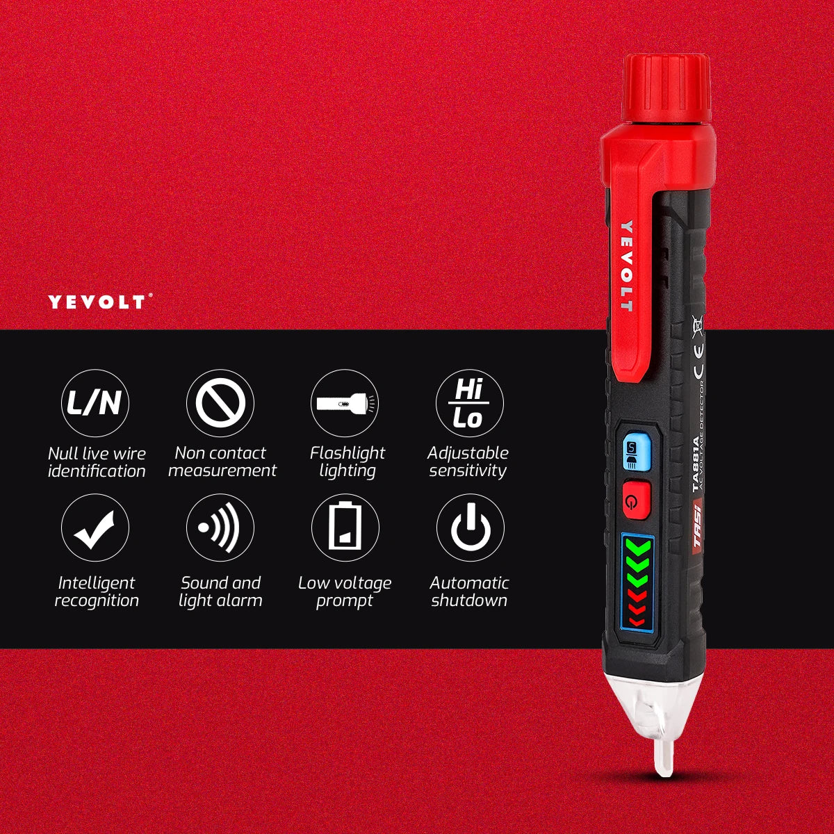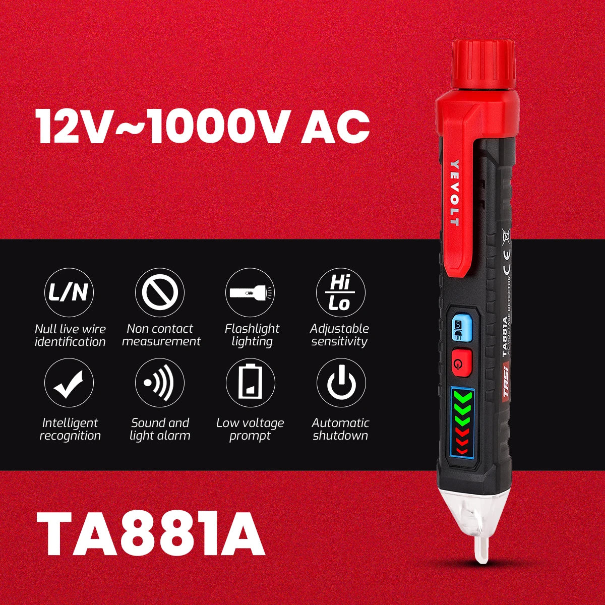 Comprobador de voltaje CA sin contacto YEVOLT TA881A, 12-1000 V CA, linterna LED, alarma sonora para determinar si hay cables con corriente o sin corriente