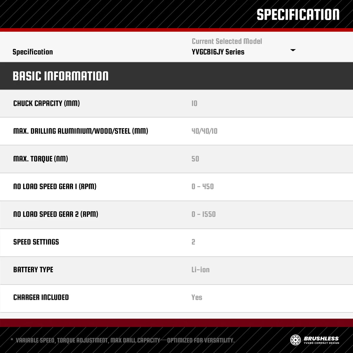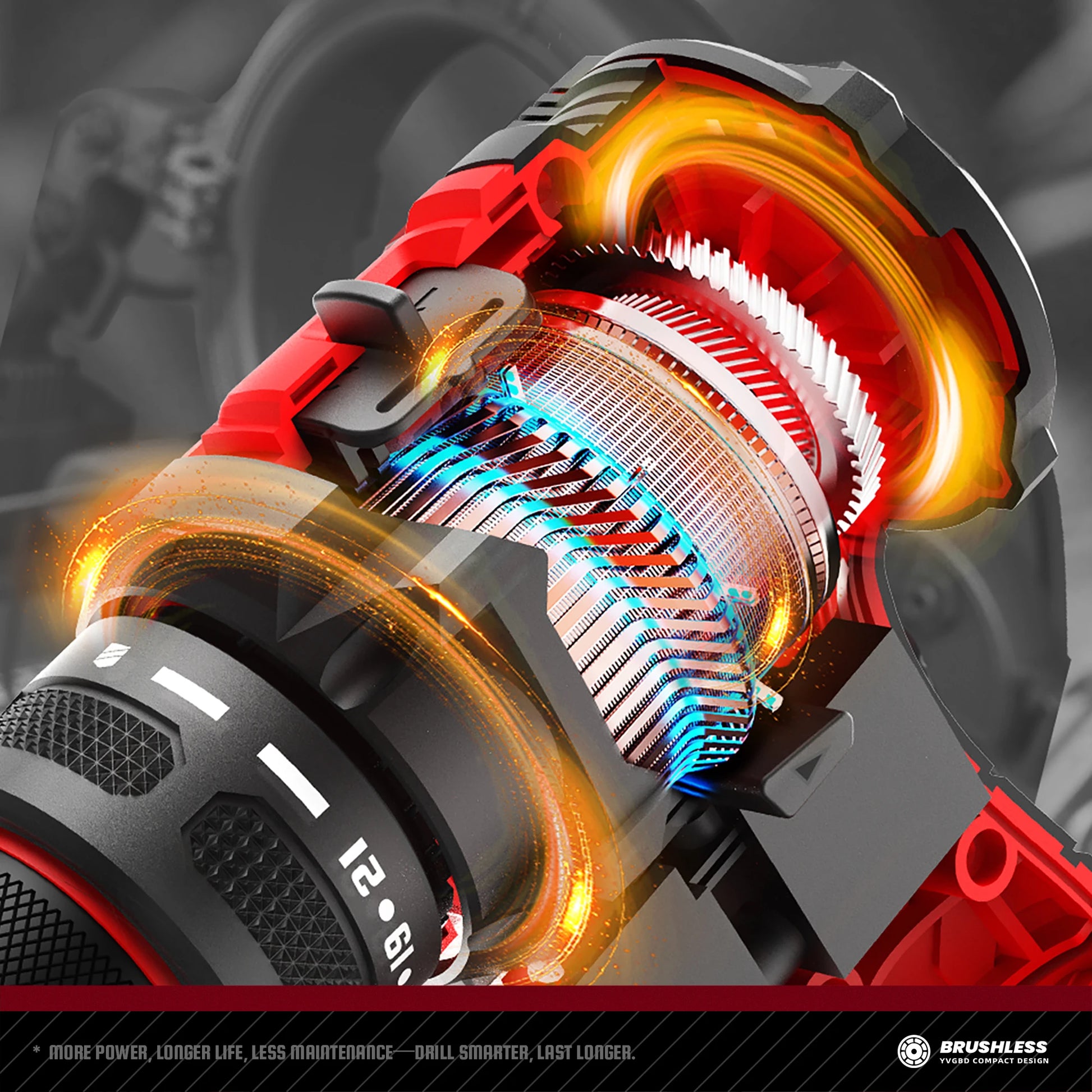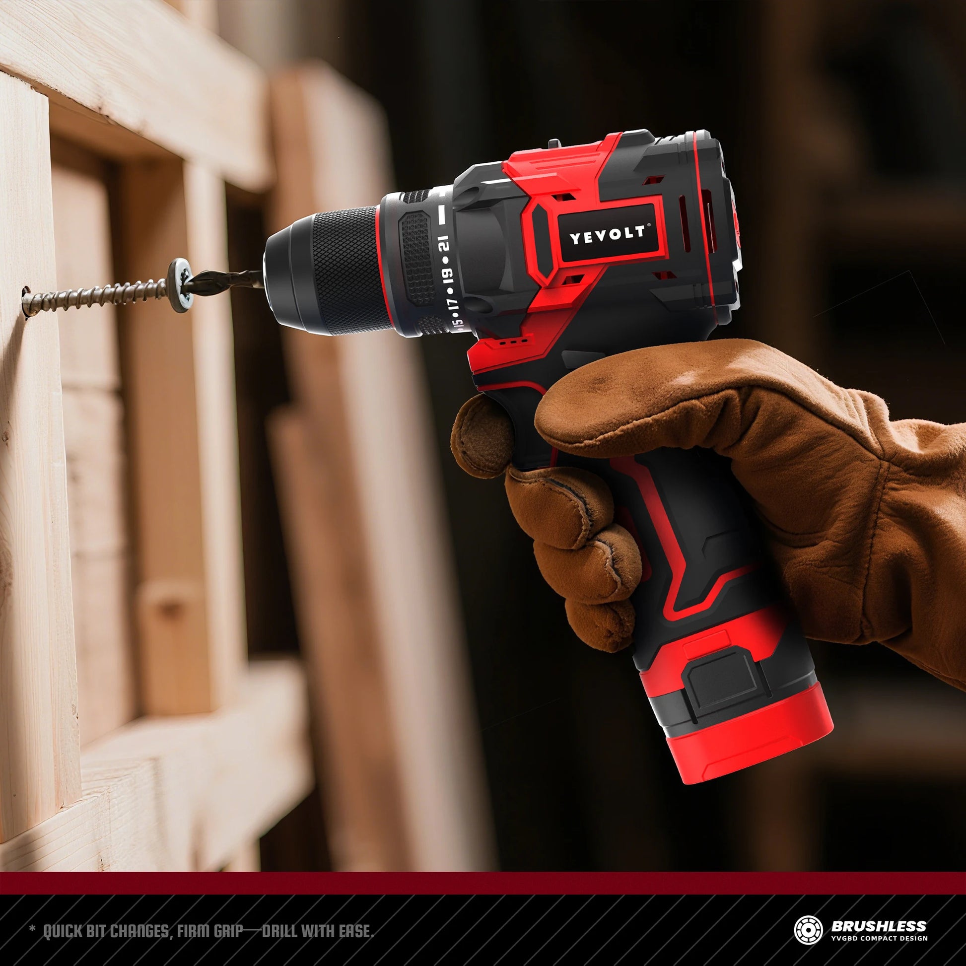 Taladro eléctrico sin escobillas YEVOLT YVGCB16JY de 16 V, batería de iones de litio, destornillador inalámbrico compacto de alta velocidad, herramientas eléctricas