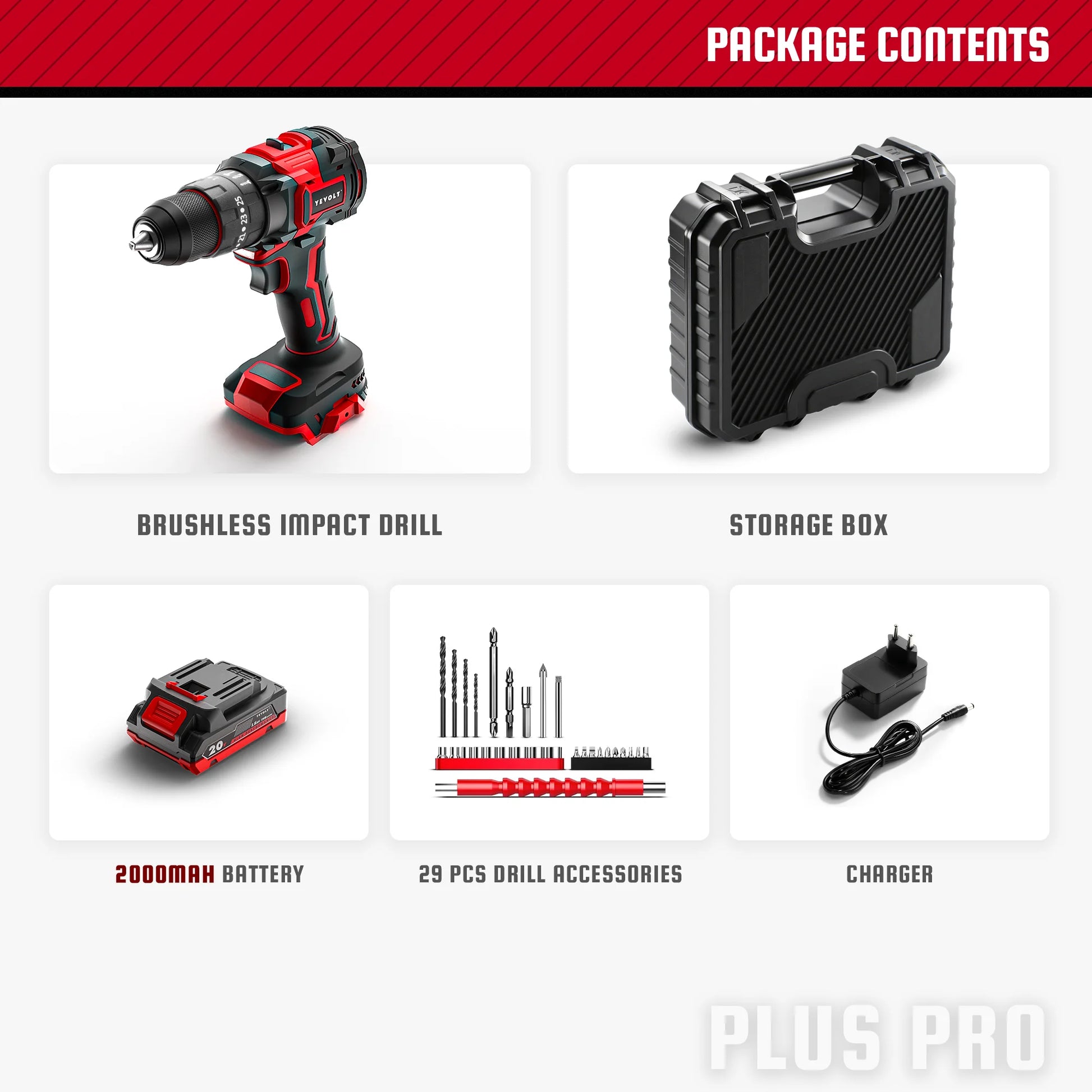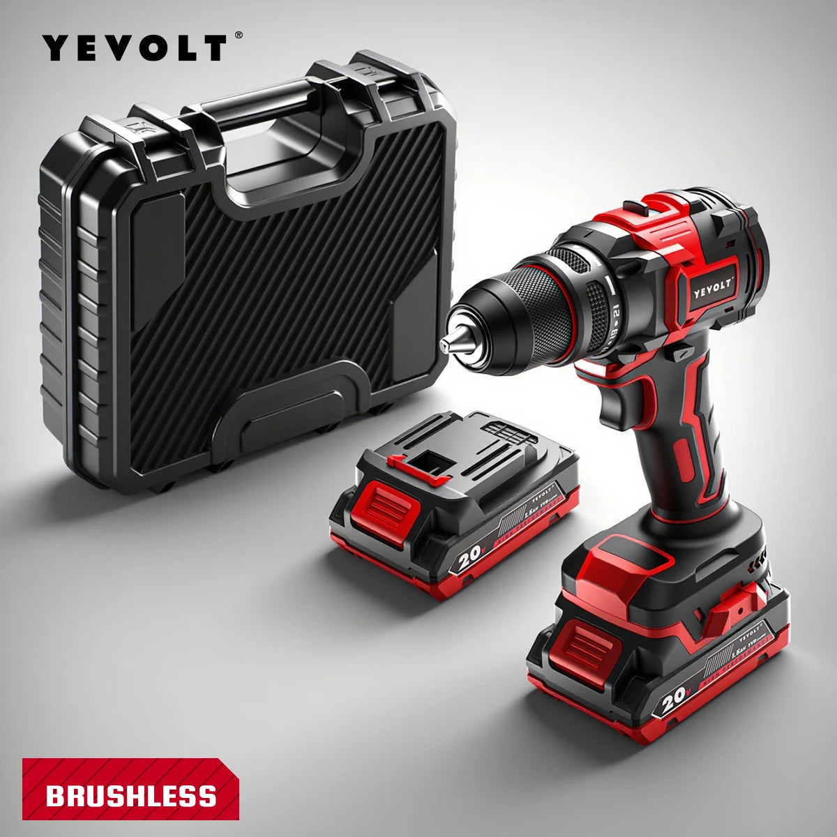 Taladro eléctrico sin escobillas YEVOLT YVGCB20JY de 20 V, batería de iones de litio, destornillador inalámbrico compacto de alta velocidad, herramientas eléctricas