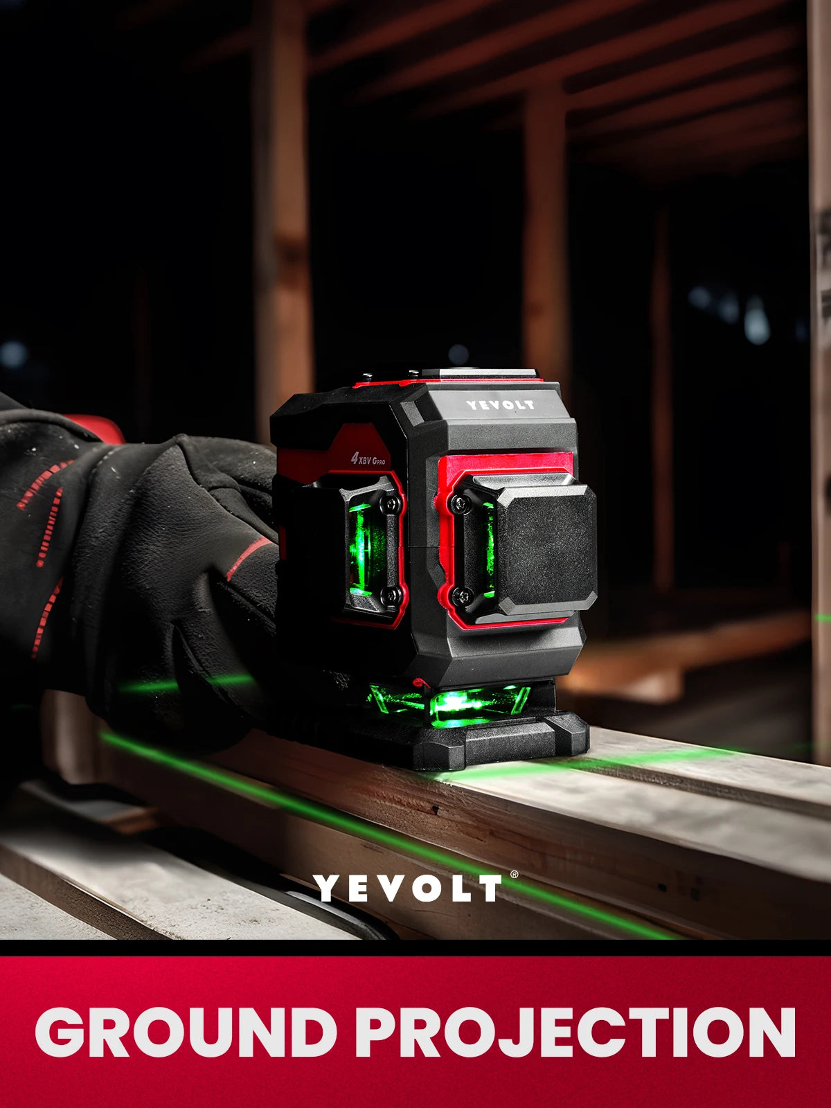 Nivel láser de tierra verde YEVOLT YVGLL4XS12T de 12 líneas, autonivelante 3D, 3 Ah/5,2 Ah, iones de litio, 360°, herramientas de medición horizontal y vertical
