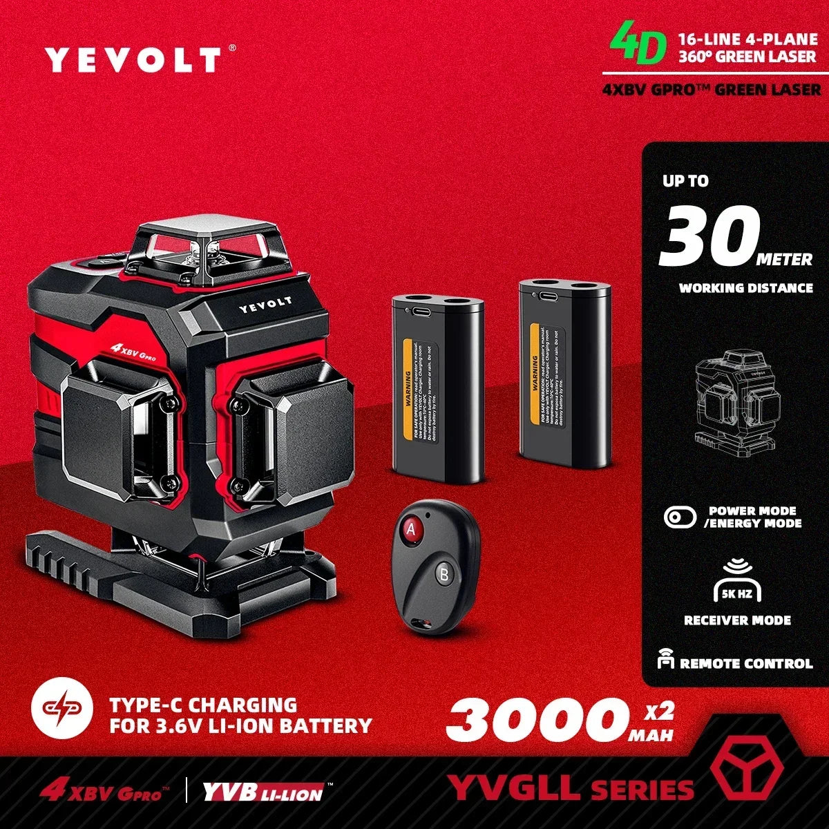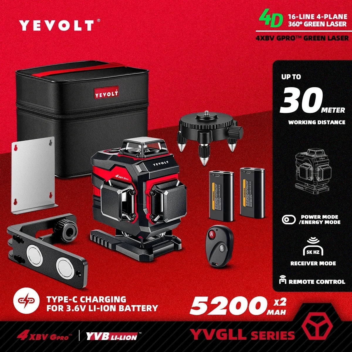 YEVOLT YVGLL4XS16 Sistema de alineación de baldosas láser rotativo de 16 líneas con diseño completo Nivel QuikTilt autonivelante de precisión de 30 m de alcance