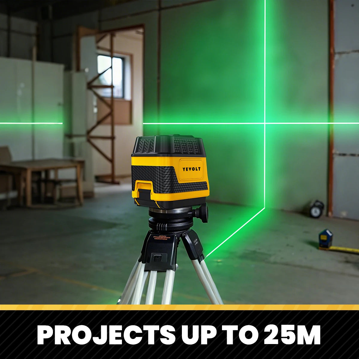 Nivel láser YEVOLT YVGLL4XS2G con posicionamiento de haz estroboscópico de líneas cruzadas, modo ecológico y nivelación automática - Verde de 515 nm para eficiencia en condiciones de poca luz