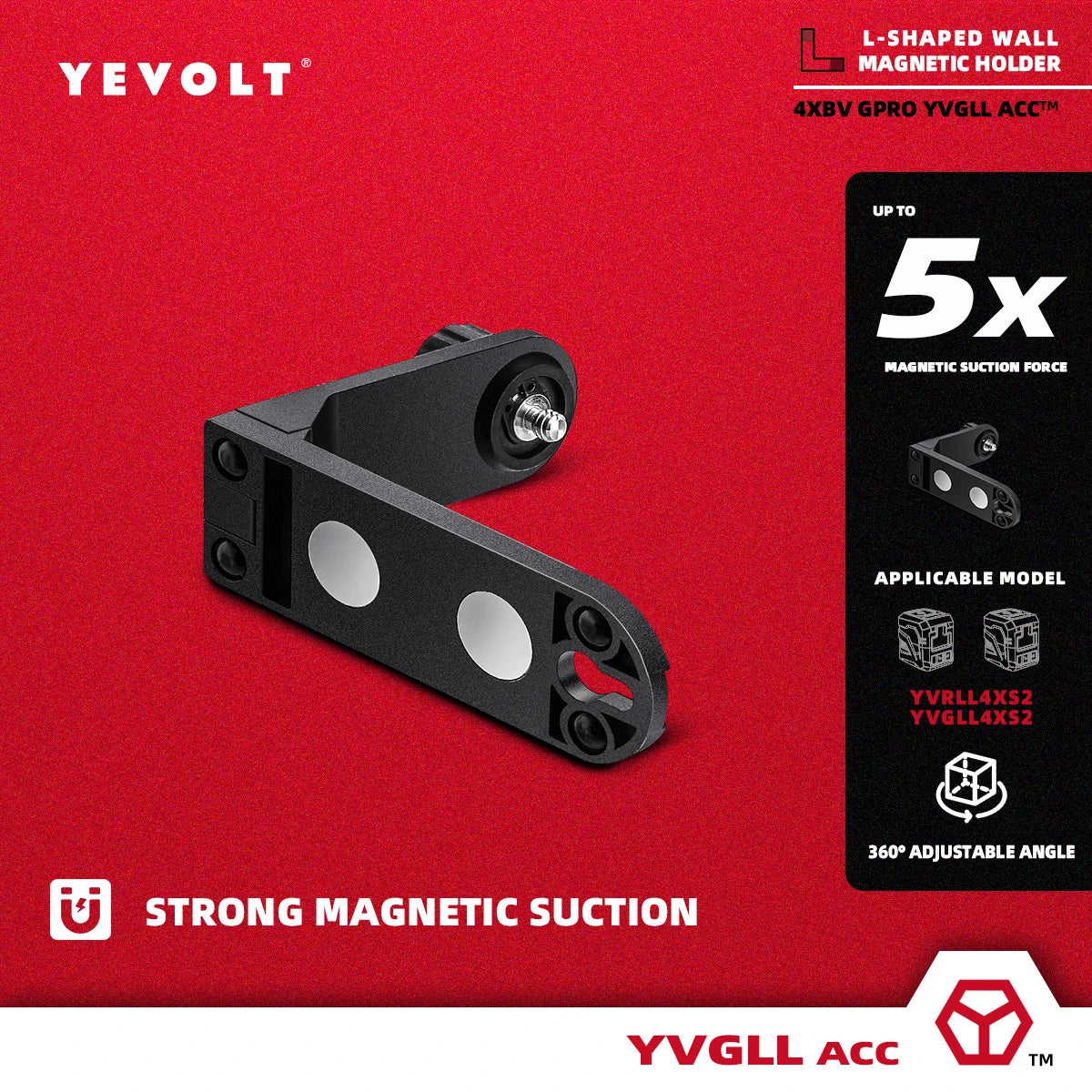 YEVOLT YVXS2LM360/YVXS3DLM360 Soporte de pared magnético para nivel láser Trípode en forma de L Adaptador de nivel Soporte giratorio
