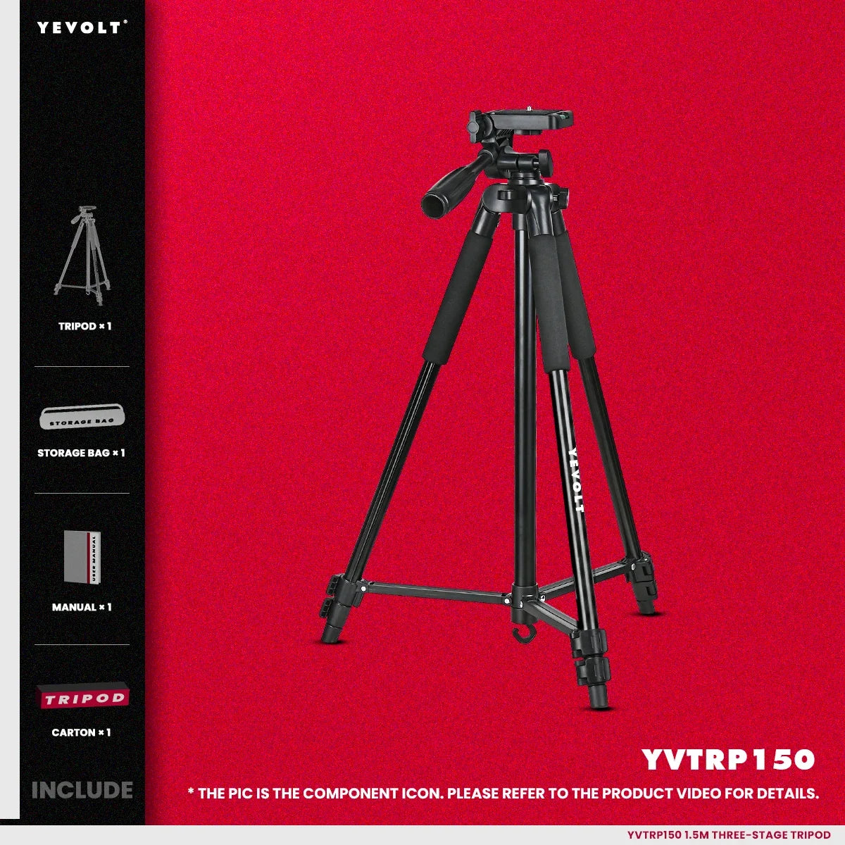 Tripé de nível a laser YEVOLT de 1,5 m em liga de alumínio com altura ajustável, suporte para tripé, adaptador para ferramenta de autonivelamento - YVTRP150