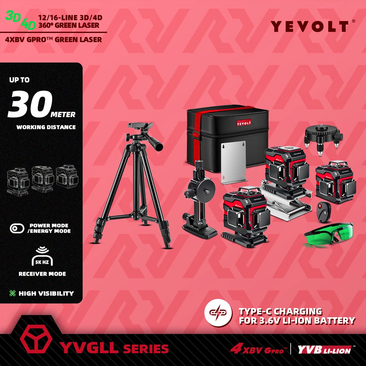 Nivelador a laser verde de alta precisão YEVOLT com suporte de 1 m incluído para XS12/XS12T/XS16 - Adequado para diversas necessidades de medição