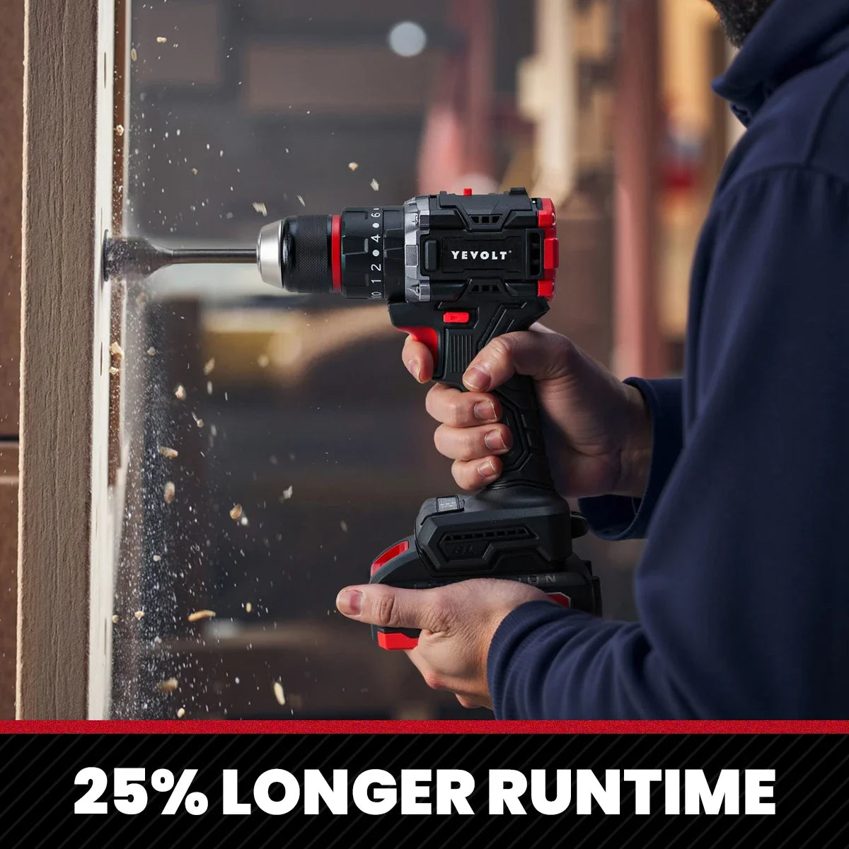 Furadeira elétrica sem fio YEVOLT YVGBD20DU2 20V ECM com motor sem escovas, 21+1 ajustes de torque, mandril de aço de 50 Nm sem chave