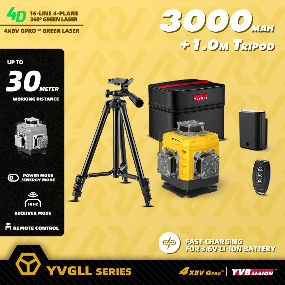 Nível a laser YEVOLT YVGLL4XS16G de 16 linhas - Janela superior giratória de 360°, botões de toque e base de metal para alinhamento em vários ângulos