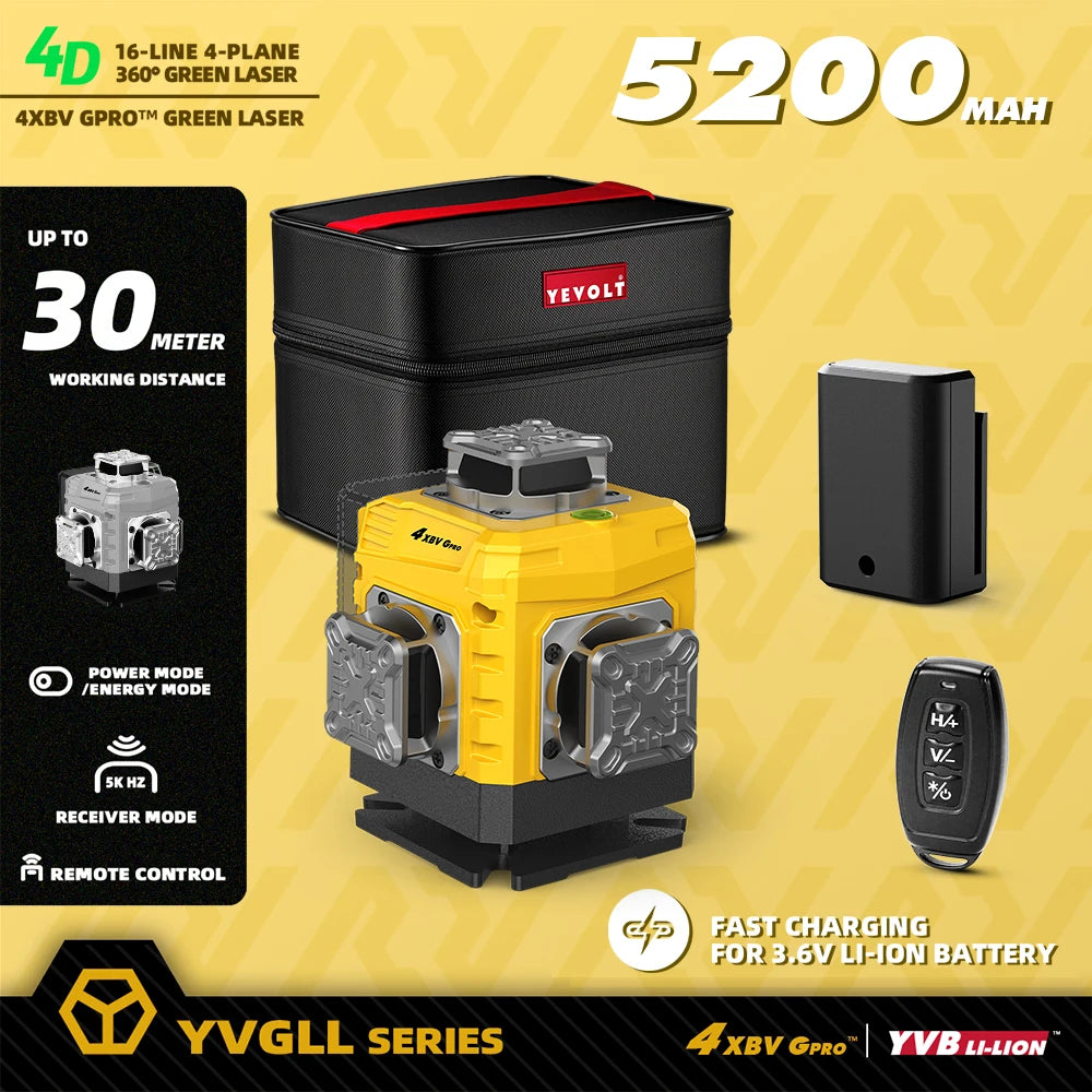 Nível a laser YEVOLT YVGLL4XS16G de 16 linhas - Janela superior giratória de 360°, botões de toque e base de metal para alinhamento em vários ângulos