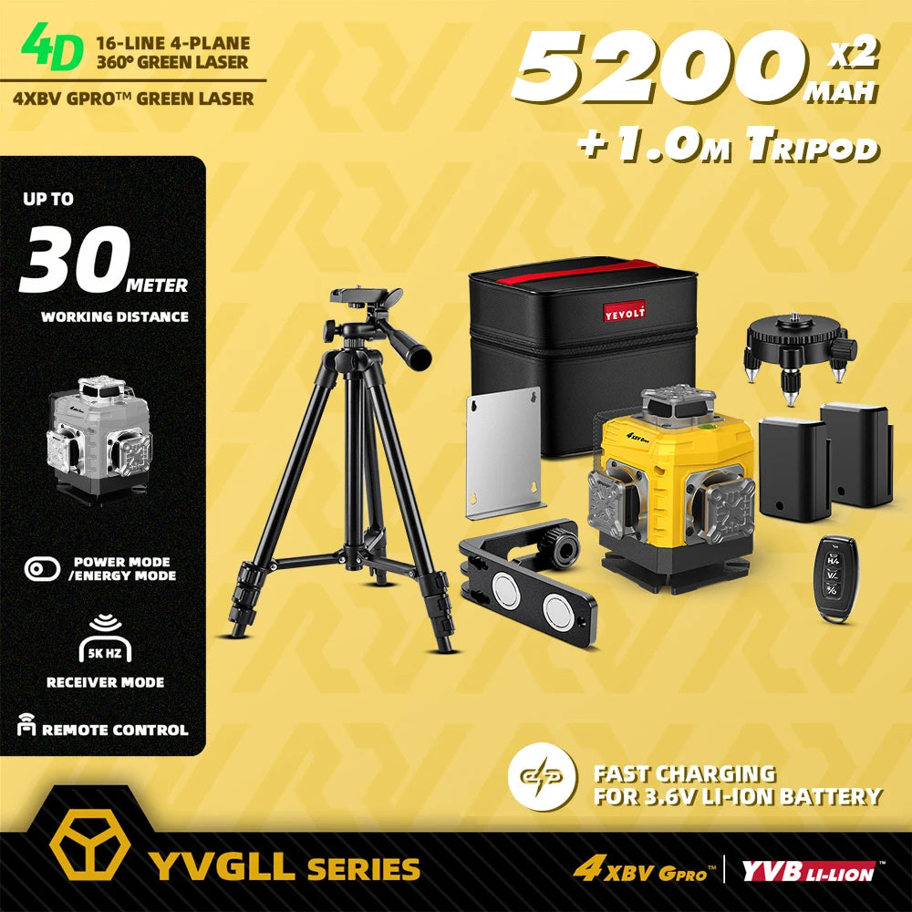 Flash estroboscópico de nível a laser YEVOLT YVGLL4XS16G de 16 linhas para rastreamento a laser, janela giratória de 360°, base de metal e botões de toque